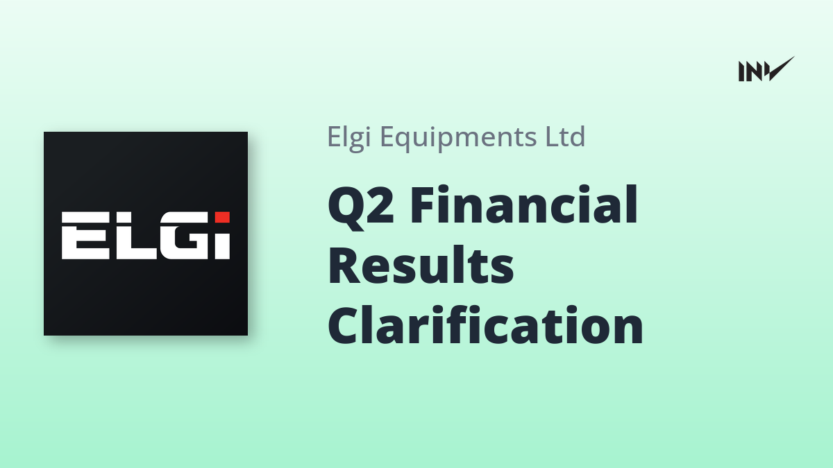 Company Update1 Min Read InvestyWise NewsonNovember 6, 2025 ELGI Equipments Clarification on Unaudited Financial Results for Q2 2026 ELGI Equipments has issued a clarification regarding the phrase used to describe their unaudited financial results. The company stated that…
