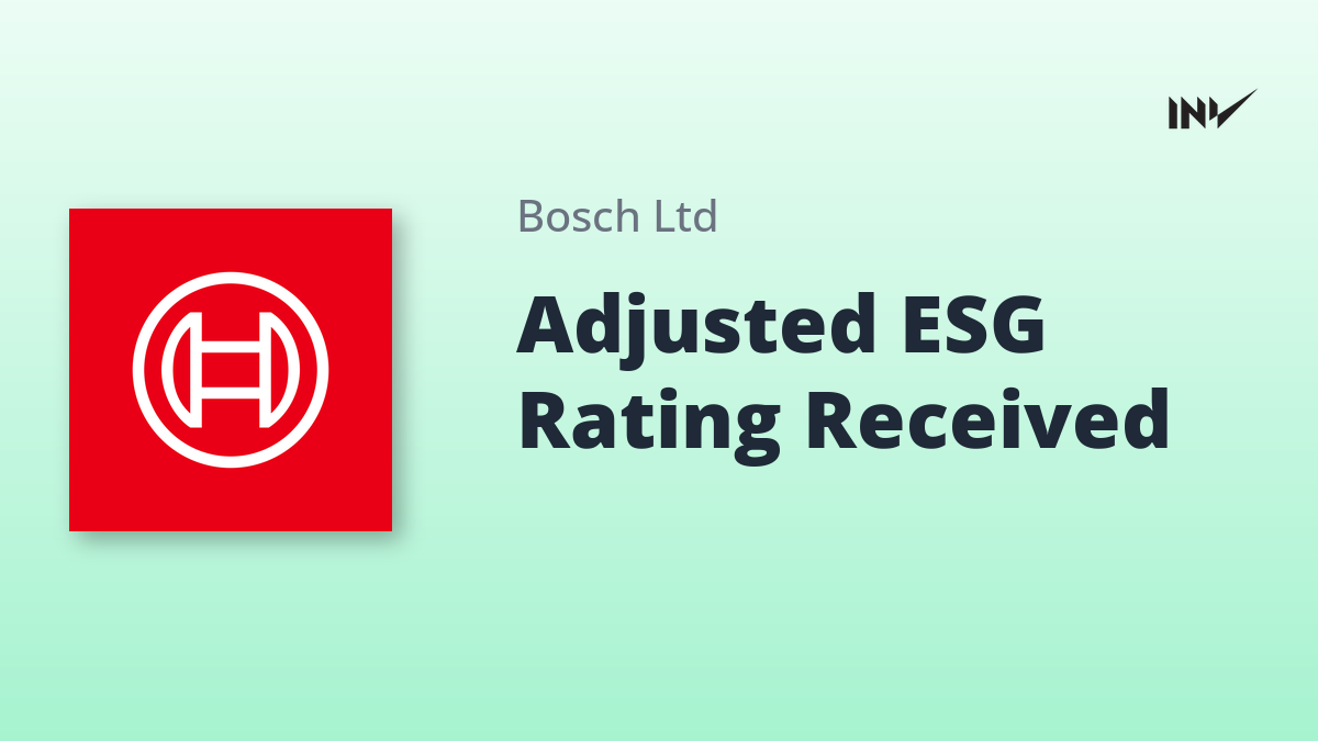 Company Update1 Min Read InvestyWise NewsonNovember 6, 2025 Bosch Receives Adjusted ESG Rating of 74.0 (Grade B+) Bosch Limited has been assigned an adjusted Environmental, Social, and Governance (ESG) score of 74.0 (Grade B+). This rating, based on FY…