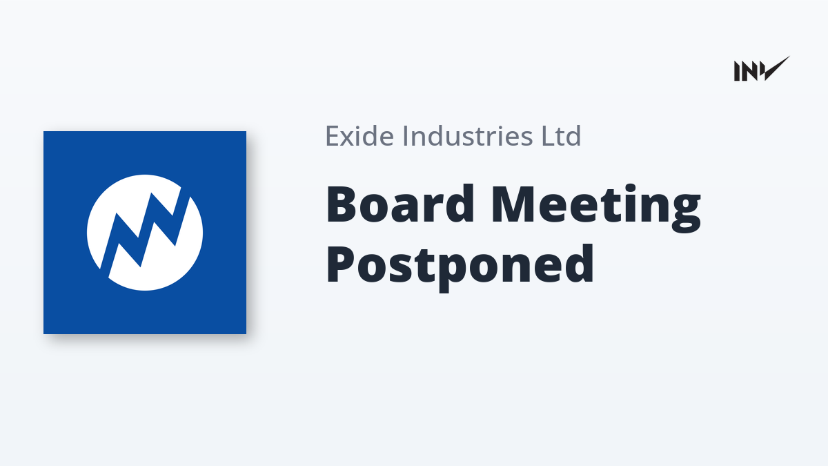 Company Update1 Min Read InvestyWise NewsonNovember 6, 2025 Exide Industries Board Meeting to Approve Quarterly Results Postponed Due to Income Tax Survey Exide Industries has postponed its Board of Directors meeting, previously scheduled for October 30, 2025, due to an Income Tax department…