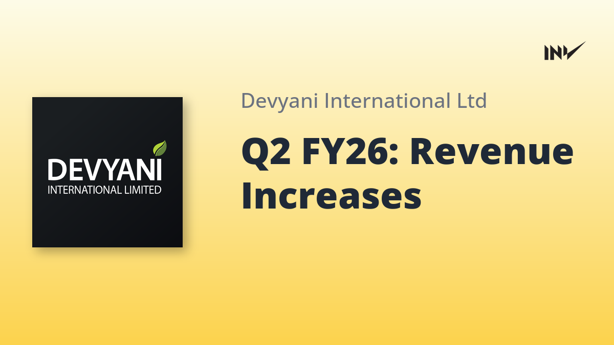 Company Update2 Min Read InvestyWise NewsonNovember 6, 2025 Devyani International Q2 FY26 Results – Revenue Up 12.6% Devyani International Limited (DIL) reported a 12.6% increase in consolidated revenue for Q2 FY26, reaching INR 13,767 Mn. KFC India’s…