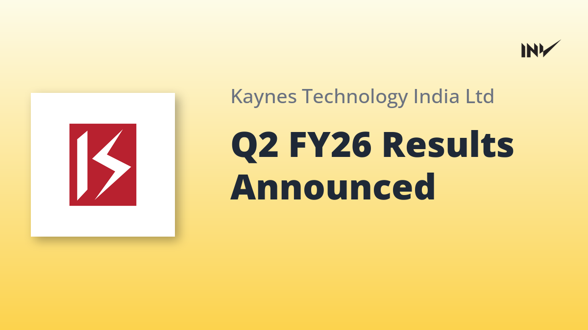 Board Meeting2 Min Read InvestyWise NewsonNovember 4, 2025 Kaynes Technology Reports Unaudited Standalone and Consolidated Results for Q2 FY26 Kaynes Technology India Limited has announced its unaudited standalone and consolidated financial results for the quarter and half-year ended…