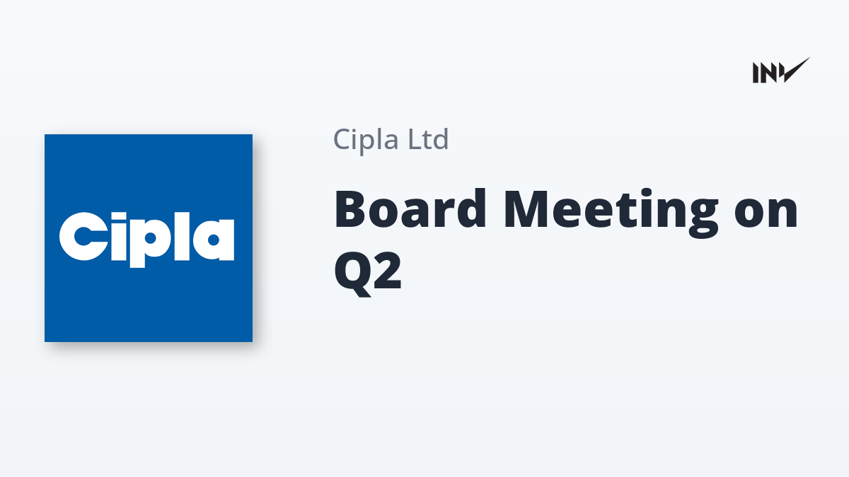 Board Meeting1 Min Read InvestyWise NewsonSeptember 24, 2025 Cipla: Board Meeting Scheduled to Approve Q2 Results Cipla has announced a board meeting on October 30, 2025, to consider and approve the unaudited standalone and consolidated financial results…
