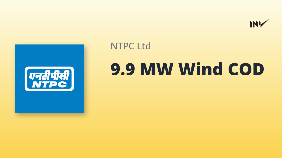 Company Update1 Min Read InvestyWise NewsonSeptember 24, 2025 NTPC: Green Energy Arm Achieves COD for 9.9 MW Wind Capacity NTPC’s subsidiary, NTPC Green Energy Limited, has achieved Commercial Operation Date (COD) for a 9.9 MW part capacity of a wind energy…