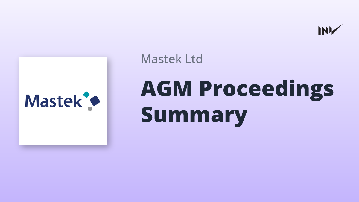 Company Update2 Min Read InvestyWise NewsonSeptember 23, 2025 Mastek: Proceedings of 43rd Annual General Meeting Mastek Limited successfully convened its 43rd Annual General Meeting (AGM) on September 23, 2025, via video conferencing. Key resolutions were…