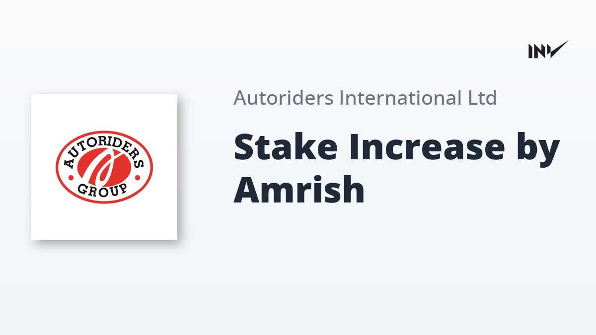 Amrish Patel has increased his stake in Autoriders International through an off-market transfer of 22,600 equity shares, representing 3.89% of voting rights. The acquisition, completed on September 17, 2025, was executed as a gift from Disha Patel. Following this transaction, Amrish Patel’s total holding in the company has risen to 6.89%.