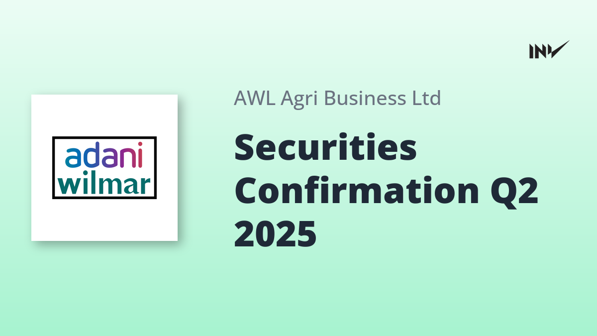 AWL Agri Business has successfully completed the confirmation of securities received from depository participants for dematerialization during the quarter ended September 30, 2025 (Q2 FY26). This confirmation is in accordance with regulatory guidelines.