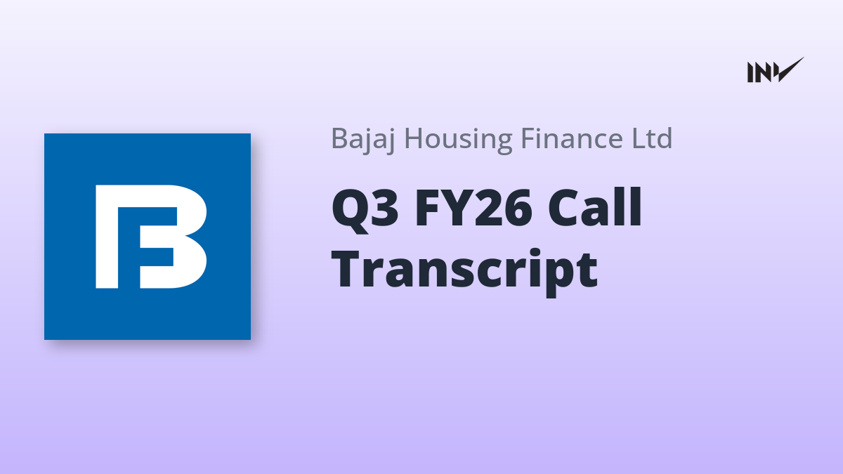 Bajaj Housing Finance has released the transcript of its Q3 FY26 earnings conference call, held on February 2, 2026. The company reported a 23% YOY growth in AUM, reaching ₹1.33 lakh crore. PAT increased by 21%, with annualized ROA at 2.3% and ROE at 12.3%. The transcript provides detailed insights into the company’s financial performance, strategic decisions, and future outlook as discussed by management during the call.