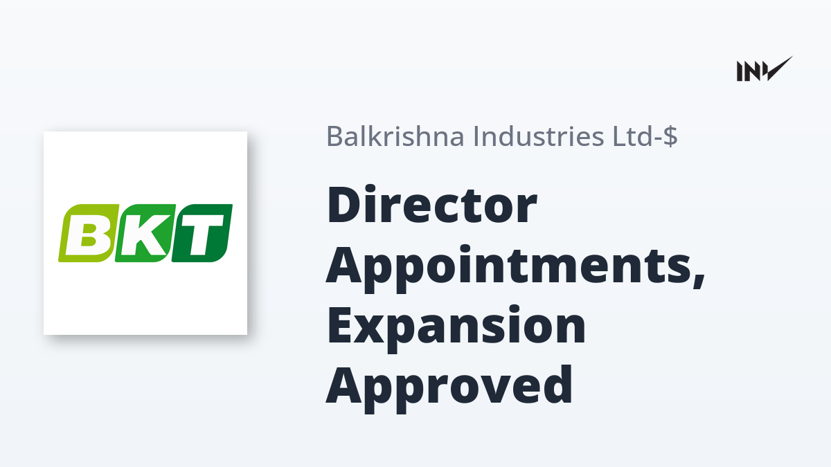Balkrishna Industries (BKT) has announced key decisions from its Board meeting, including the re-appointment of Mr. Arvind Poddar as Chairman & Managing Director and the appointment of Mr. Natarajan Gnanaskandan Tanjore and Mr. Ashok Saraf as Directors. Additionally, the company has completed one line of its Carbon Black Production facility, increasing total capacity to 2,65,000 TPA. Further Carbon Black expansion is progressing on schedule.