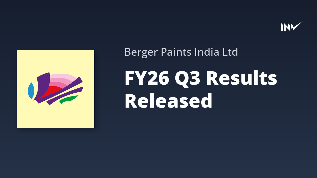 Berger Paints India announced its Q3 FY26 results, highlighting strong standalone volume growth of 8.5%. The company achieved its highest gross margin in the past 15 quarters, with EBIDTA margin within the guidance range. Despite extended monsoons, demand improved, leading to positive growth. The company sees continued strength in waterproofing, construction chemicals, and wood coatings.