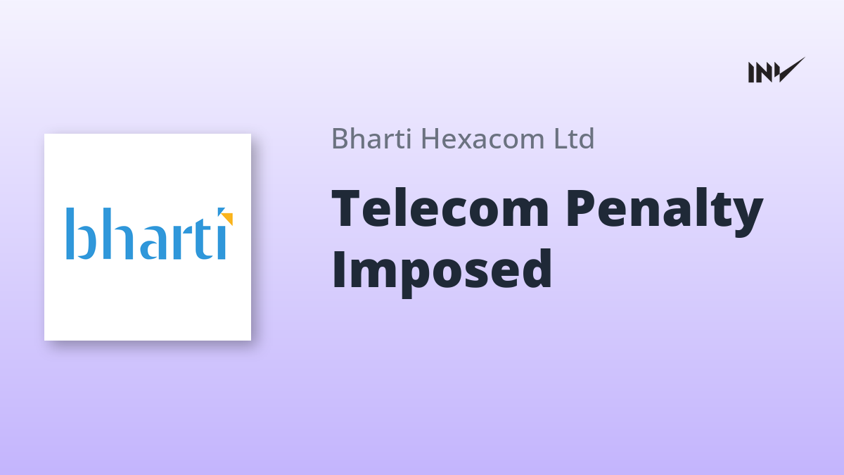 Bharti Hexacom Limited reported receiving a notice from the Department of Telecommunications (DoT) imposing a penalty of ₹2,64,000. The alleged violation pertains to non-compliance with subscriber verification norms identified during a Customer Application Form (CAF) Audit for the quarter ending December 2025. The company has stated that the maximum financial impact is limited to the penalty levied, noting that a portion of the penalty is currently subject to appeal before the TDSAT.
