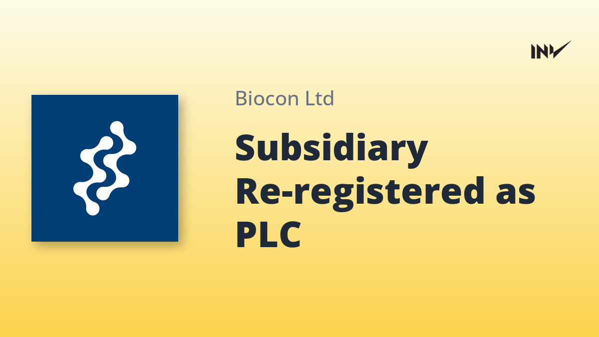 Biocon has announced a key change in the status of one of its subsidiaries. Effective October 29, 2025, Biocon Biologics UK Limited, a subsidiary of Biocon Biologics Limited (BBL), has officially been re-registered as a Public Limited Company (‘PLC’).