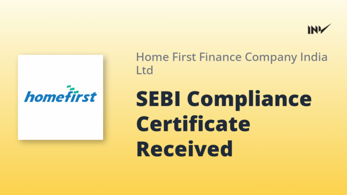 Home First Finance India has received a certificate confirming compliance with SEBI (Depositories and Participants) Regulations for the quarter ended September 30, 2025. The certificate, dated October 3, 2025, was issued by KFin Technologies Limited, the Registrar and Transfer Agent.