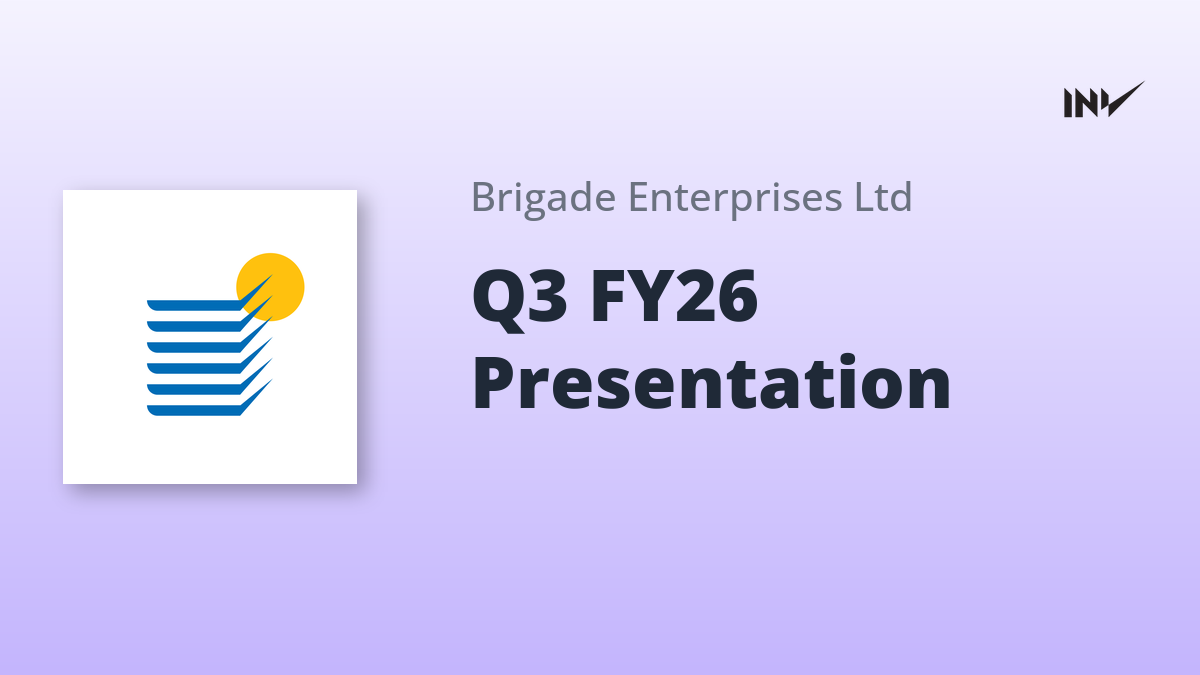 Brigade Enterprises has released its investor presentation for Q3 FY26, highlighting strong presales of INR 1,750 Cr, a consistent EBITDA margin of ~26%-28%, and leasing portfolio occupancy at 93%. The presentation outlines the company’s performance across real estate, lease rentals, and hospitality sectors, and details upcoming project launches. The company reported revenue of INR 1,623 CR for Q3 FY26.