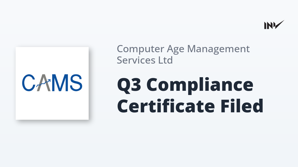 Computer Age Management Services (CAMS) has received and filed its Compliance Certificate, demonstrating adherence to regulatory standards for the third quarter of the financial year. The certificate pertains to the period ending December 31, 2025 (Q3 2026).