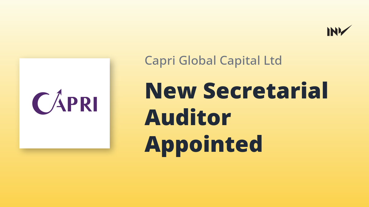 Capri Global Capital Limited has appointed Sandeep P Parekh & Co. as its Secretarial Auditor. The appointment, approved at the 31st Annual General Meeting (AGM) on September 26, 2025, is for a term of 5 consecutive years, effective from the conclusion of the 31st AGM up to the conclusion of the 36th AGM. Sandeep P Parekh & Co. is a peer-reviewed firm established in 2007.