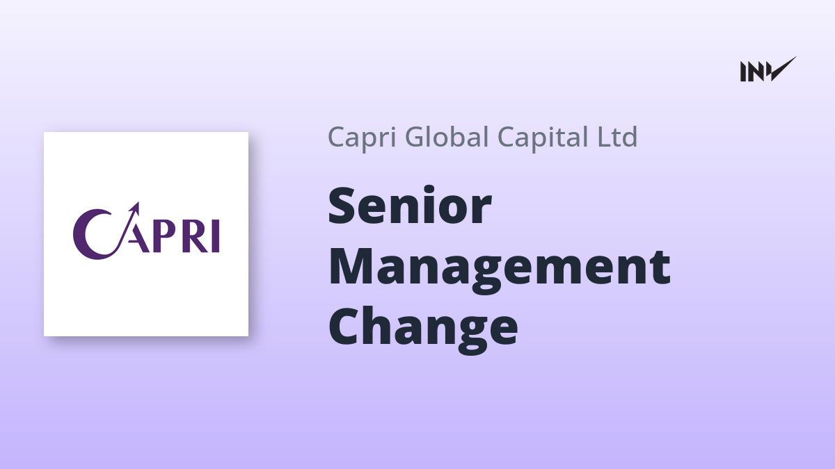 Capri Global Capital announces that Mr. Chirag Shah has tendered his resignation from the positions of Head of Internal Audit and Internal Auditor of the Company. He was initially appointed to these roles effective May 05, 2025.