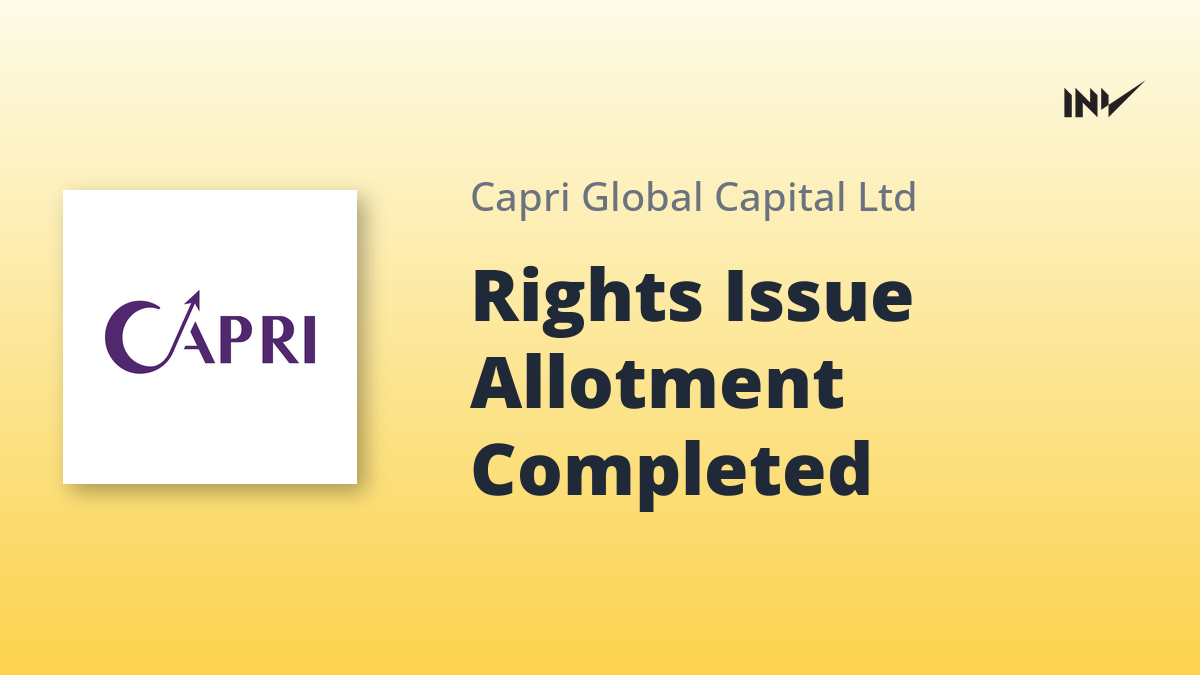Capri Global Capital Limited has formally confirmed the allotment of equity shares in its wholly-owned subsidiary, Capri Global Housing Finance Limited (CGHFL), following a Rights Issue previously intimated on January 29, 2026. The Management Committee of CGHFL approved the allotment on March 23, 2026.