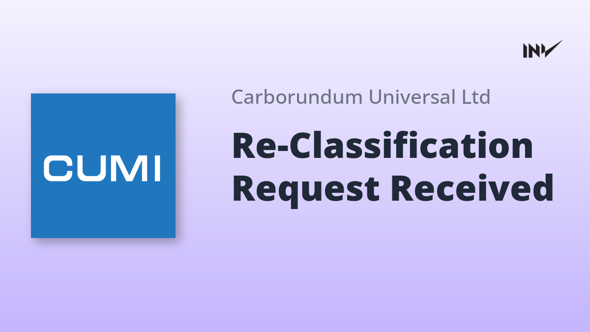 Carborundum Universal Limited (CUMI) has received a formal request, dated September 16, 2025, from Yanmar Coromandel Agrisolutions Private Limited (YCAS), seeking re-classification from its current status as part of the ‘Promoter/Promoter Group’ to the ‘Public’ category.