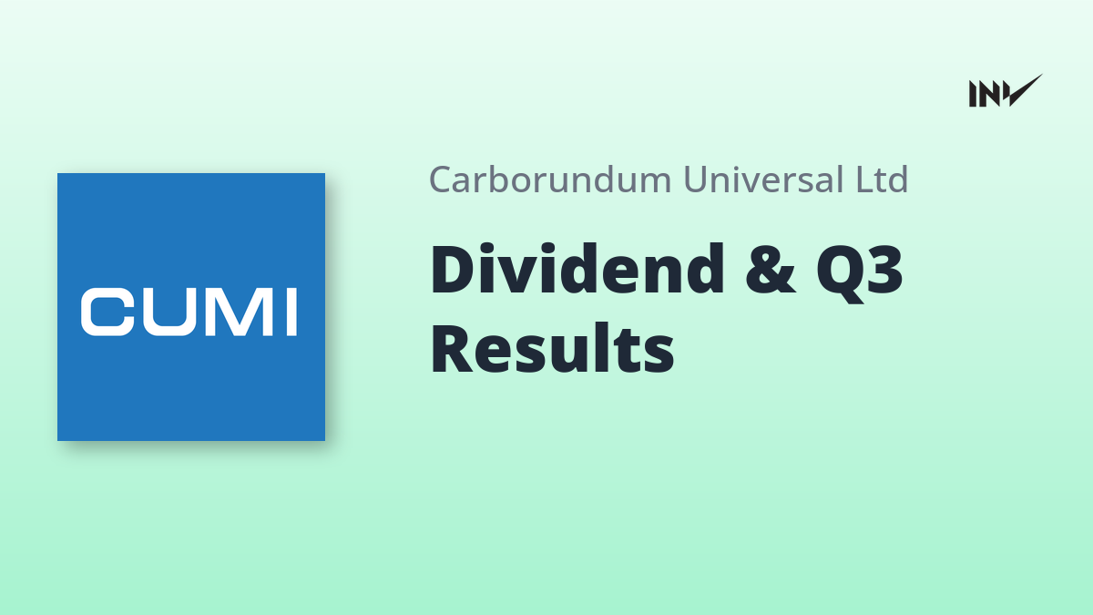Carborundum Universal Limited (CUMI) announced its Q3 FY26 results, with standalone sales reaching ₹769 Crores and a profit after tax of ₹85 Crores. The board declared an interim dividend of ₹1.50 per share. Consolidated sales stood at ₹1273 Crores, with a profit after tax of ₹76 Crores. Growth was seen in the Abrasives and Electrominerals segments, while the Ceramics segment experienced a slight decline.