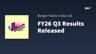 Board Meeting2 Min Read InvestyWise NewsonFebruary 5, 2026 Berger Paints India Q3 FY26 Results Show Strong Volume Growth Berger Paints India announced its Q3 FY26 results, highlighting strong standalone volume growth of 8.5%. The company achieved its highest…