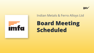 Board Meeting1 Min Read InvestyWise NewsonJanuary 29, 2026 Indian Metals & Ferro Alloys Board Meeting to Consider Unaudited Financial Results The Board of Directors of Indian Metals & Ferro Alloys (IMFA) is scheduled to meet on Thursday, February 5, 2026, to review and approve…