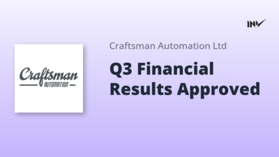 Company Results1 Min Read InvestyWise NewsonJanuary 28, 2026 Craftsman Automation Board Approves Unaudited Financial Results for Q3 2026 Craftsman Automation’s Board of Directors approved the unaudited standalone and consolidated financial results for Q3 2026, ending…