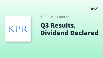 Company Results2 Min Read InvestyWise NewsonFebruary 9, 2026 K.P.R. Mill Limited Board Approves Q3 FY26 Results and Declares 250% Interim Dividend K.P.R. Mill Limited announced the approval of its Un-Audited Standalone and Consolidated Financial Results for the Quarter ended December 31,…