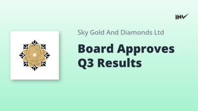 Company Results2 Min Read InvestyWise NewsonFebruary 9, 2026 Sky Gold & Diamonds Limited Outcome of Board Meeting and Unaudited Financial Results for Q3 FY2025-26 Sky Gold & Diamonds Limited announced the outcome of its Board Meeting held on February 9, 2026. The Board approved the Unaudited…