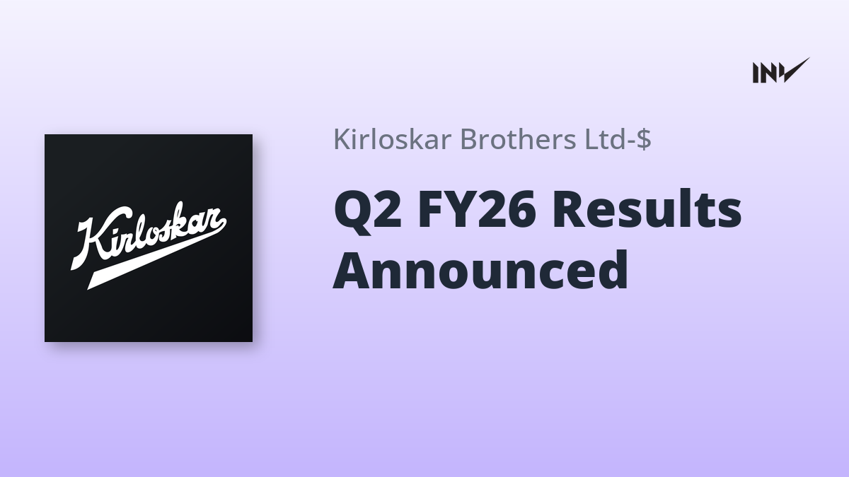 Company Results1 Min Read InvestyWise NewsonNovember 3, 2025 Kirloskar Brothers Unaudited Financial Results for Quarter Ended September 30, 2025 Kirloskar Brothers Limited announced its unaudited financial results for the quarter ended September 30, 2025. The results were reviewed by…