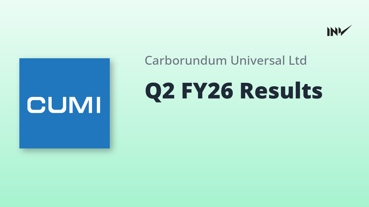 Company Results1 Min Read InvestyWise NewsonOctober 30, 2025 Carborundum Universal Q2 FY26 Consolidated PAT at Rs.75 Crores Carborundum Universal (CUMI) announced its Q2 FY26 results, with consolidated sales at Rs. 1287 Crores and profit after tax (PAT) at Rs.75…