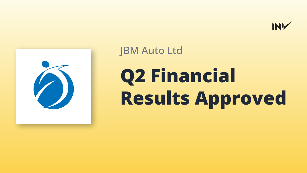 Company Results1 Min Read InvestyWise NewsonOctober 30, 2025 JBM Auto Limited Board Approves Unaudited Financial Results for Q2 2025-26 JBM Auto Limited’s Board of Directors approved the unaudited financial results for the second quarter (Q2: July-September) and half-year…