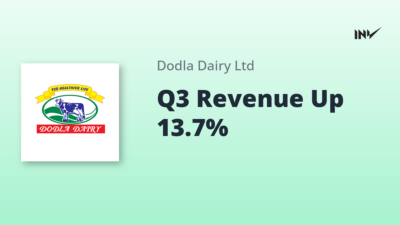 Company Update2 Min Read InvestyWise NewsonJanuary 27, 2026 Dodla Dairy Q3 FY26 Revenue Climbs 13.7% Despite Margin Pressures Dodla Dairy reported a 13.7% YoY increase in revenue, reaching ₹10,250 million in Q3 FY26. Despite robust volume growth, profitability was…