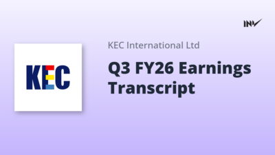 Company Update1 Min Read InvestyWise NewsonFebruary 2, 2026 KEC International Earnings Call Transcript for Q3 FY26 Available KEC International has announced the availability of the transcript for its Q3 FY26 earnings conference call. The call, held on January 30,…