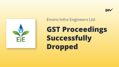 Company Update1 Min Read InvestyWise NewsonFebruary 9, 2026 Enviro Infra Engineers Limited Proceedings Dropped in Significant GST Case Enviro Infra Engineers Limited announced the successful closure of Goods and Services Tax (GST) proceedings initiated by the Punjab State Tax…