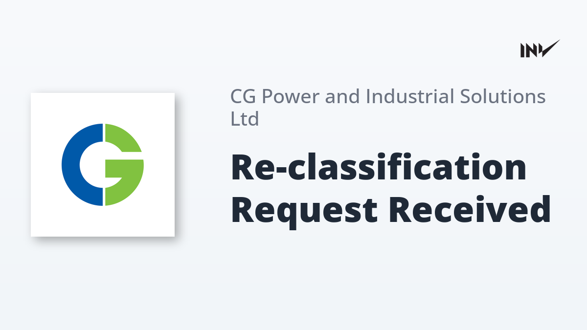 Company Update1 Min Read InvestyWise NewsonSeptember 26, 2025 CG Power and Industrial Solutions: Re-classification Request from Coromandel Engineering CG Power and Industrial Solutions has received a request from Coromandel Engineering Company Limited (CECL) to be re-classified from the…