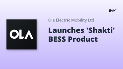 Company Update1 Min Read InvestyWise NewsonJanuary 12, 2026 Ola Electric Launches First ‘Shakti’ Battery Storage System from Gigafactory Ola Electric has launched its first residential Battery Energy Storage System (BESS), named ‘Shakti’, from its Gigafactory in…