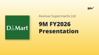 Company Update1 Min Read InvestyWise NewsonJanuary 10, 2026 Avenue Supermarts Investor Presentation – 9M FY2026 Performance Avenue Supermarts has released its investor presentation highlighting the company’s performance for the nine months ended December 31,…