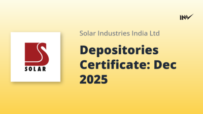 Company Update1 Min Read InvestyWise NewsonJanuary 6, 2026 Solar Industries Certificate for December 2025 Quarter Depositories Solar Industries India Limited has received the confirmation certificate for the quarter ended December 31, 2025, regarding the depositories…