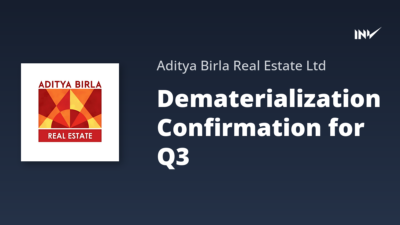 Company Update1 Min Read InvestyWise NewsonJanuary 6, 2026 Aditya Birla Real Estate Confirmation of Dematerialization for Q3 2026 Aditya Birla Real Estate has received confirmation from MUFG Intime India Private Limited regarding the dematerialization of securities for…