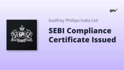 Company Update1 Min Read InvestyWise NewsonJanuary 6, 2026 Godfrey Phillips India Certificate for SEBI Regulations Compliance Received Godfrey Phillips India has received a certificate dated January 1, 2026, from MUFG Intime India Private Limited, its Registrar and Share…