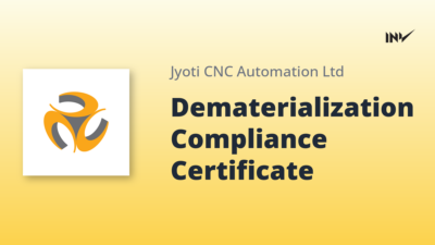 Company Update1 Min Read InvestyWise NewsonJanuary 6, 2026 Jyoti CNC Automation Compliance Certificate for Dematerialization Confirmed Jyoti CNC Automation has confirmed that it did not receive any requests for dematerialization or rematerialization of shares during the…