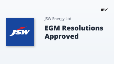 Company Update1 Min Read InvestyWise NewsonJanuary 3, 2026 JSW Energy Outcome of Extraordinary General Meeting Held on January 3, 2026 An Extraordinary General Meeting (EGM) of JSW Energy was held on January 3, 2026, where members approved all proposed resolutions with the…