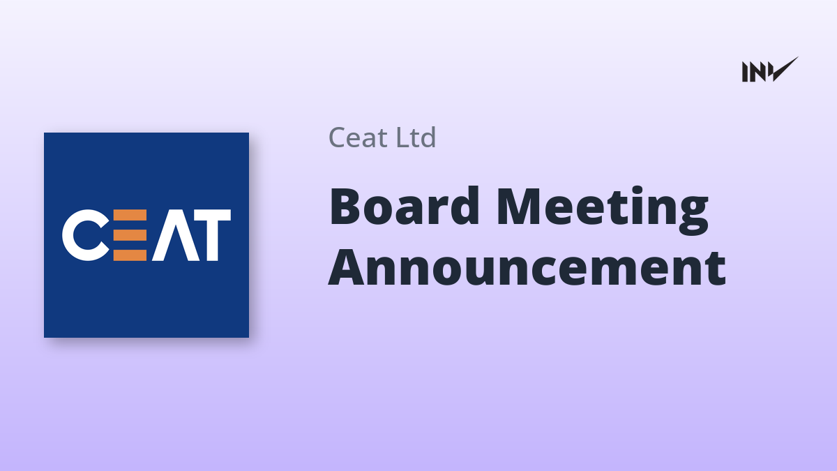 CEAT Limited has announced that a meeting of its Board of Directors is scheduled for October 17, 2025. The primary agenda is to consider and approve the Unaudited Financial Results for the quarter and period ended September 30, 2025 (Q2). The Board will also review the Limited Review Report. The trading window remains closed until 48 hours after the results are declared.