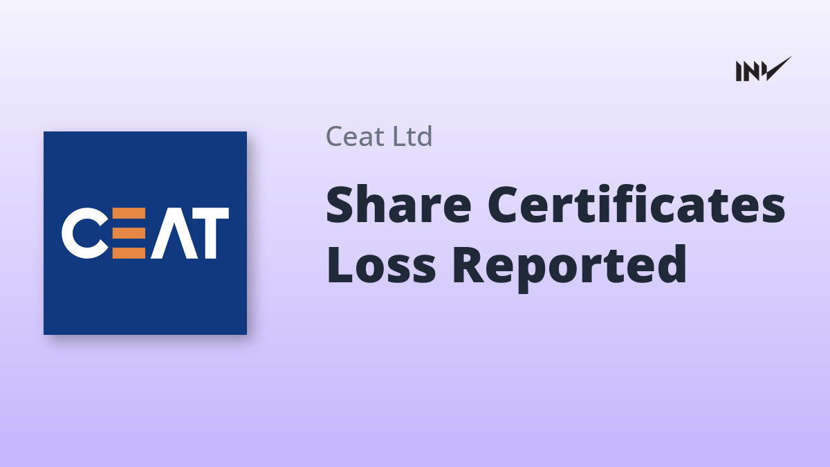 CEAT Limited has announced the loss of certain share certificates based on information received from NSDL Database Management Limited, the Registrar and Transfer Agent. The company is informing shareholders and relevant parties to facilitate reference, records, and dissemination of this information. Shareholders with claims regarding these securities should notify the Company within 15 days to prevent the issuance of duplicate certificates.