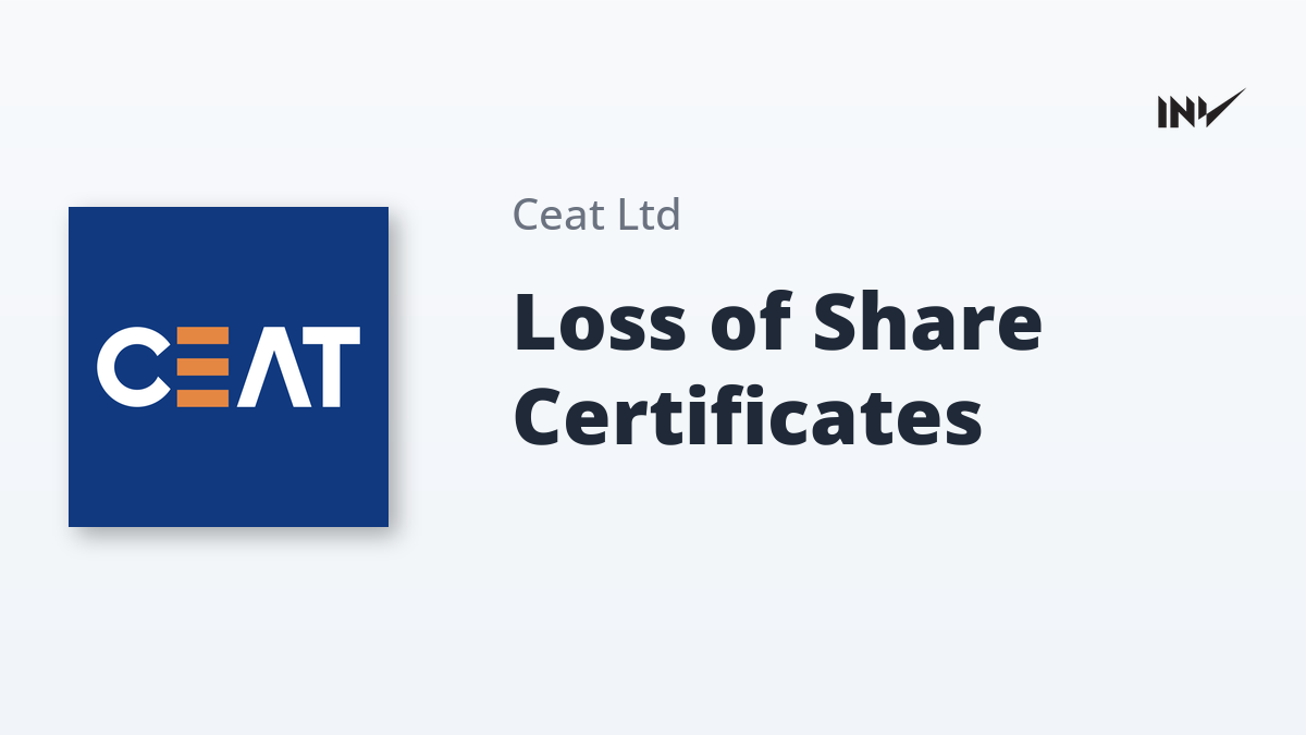 CEAT Limited has announced the intimation of loss of share certificates as received from NSDL Database Management Limited, the Registrar and Transfer Agent of the Company. The intimation, dated February 3, 2026, includes details of the folio number, name of the holder, and the corresponding certificate and distinctive numbers. Shareholders with claims are advised to contact the company within 15 days.