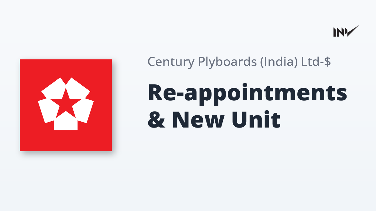 Century Plyboards’ Board of Directors has approved the re-appointment of Shri Sanjay Agarwal as CEO and Managing Director and Shri Ajay Baldawa as Executive Director (Technical) for another five years, effective July 1, 2026. The board also approved setting up a new manufacturing unit for Plywood and Medium Density Fiber boards (MDF) in Uttar Pradesh and the re-designation of Dr. Sandip Pradhan.