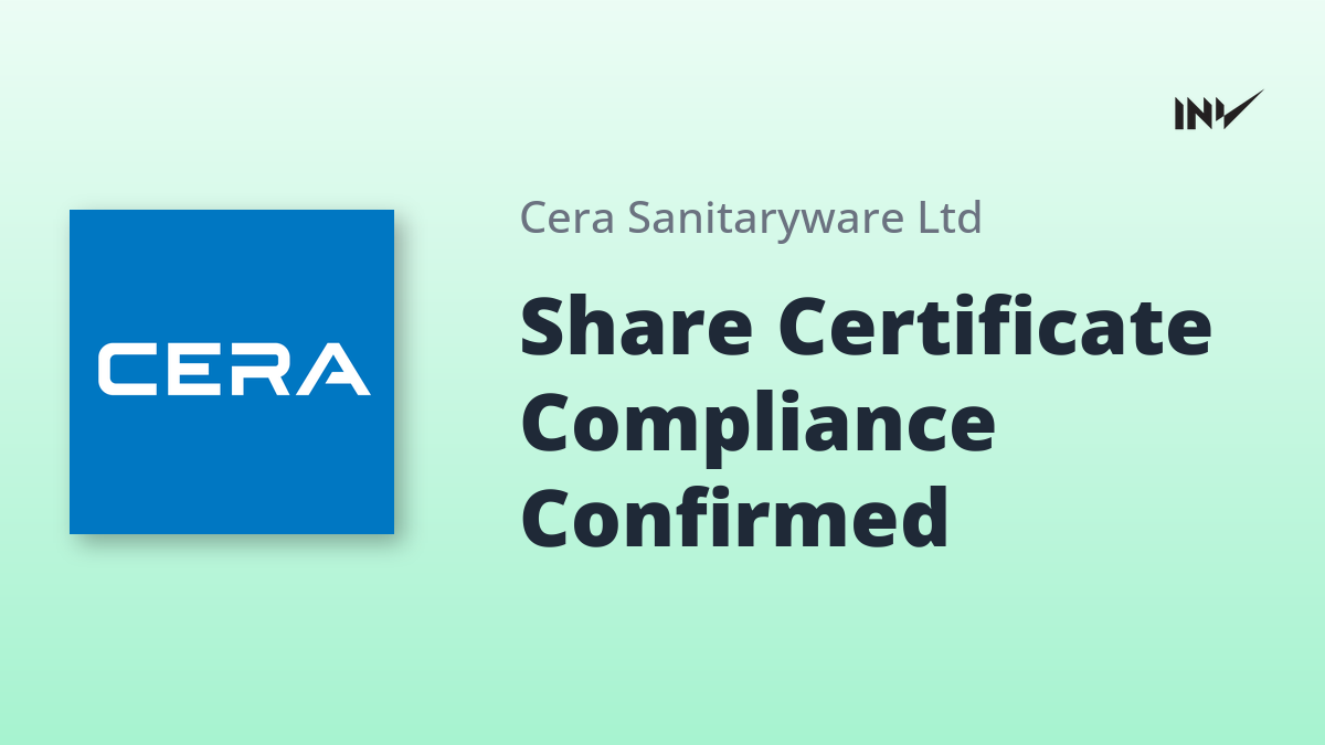 Cera Sanitaryware has received confirmation regarding the handling of share certificates for the quarter ended September 30, 2025 (Q2 2025). This confirmation comes from MCS Share Transfer Agent Limited, the Registrar and Share Transfer Agent (RTA).