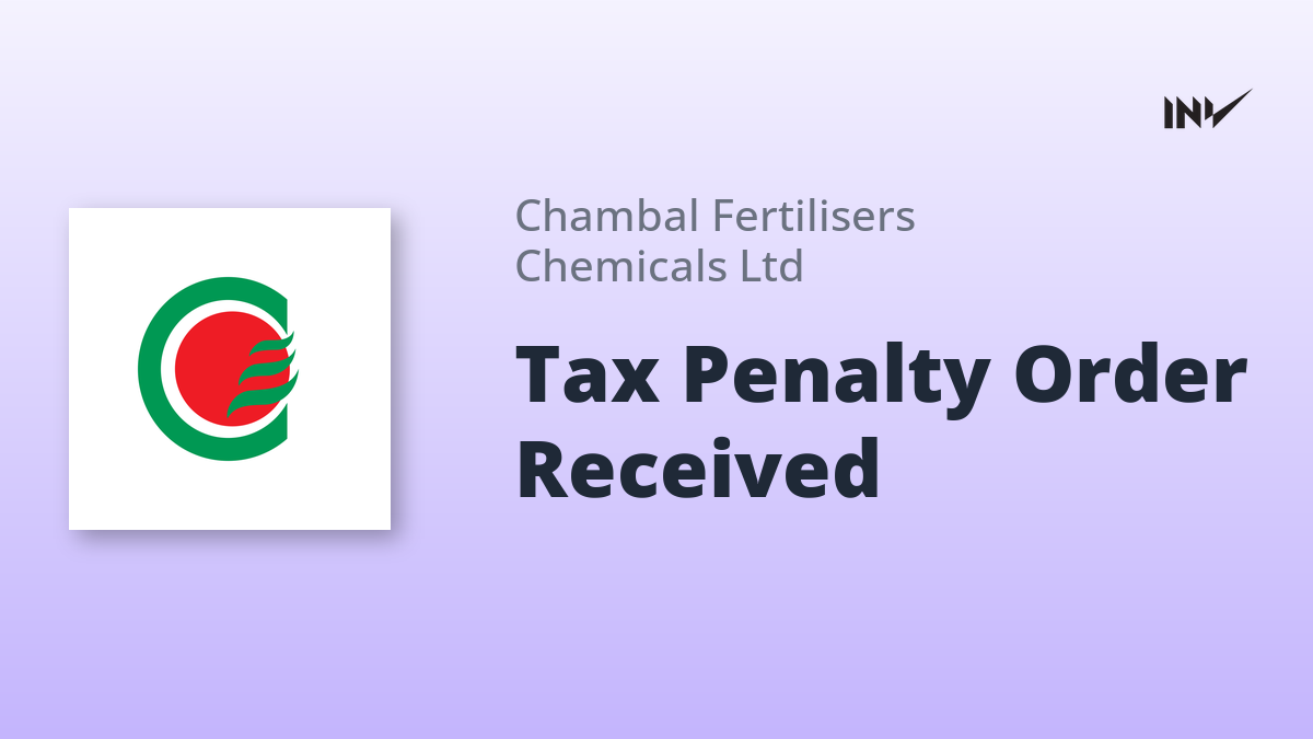 Chambal Fertilisers and Chemicals Limited has disclosed the receipt of an order from the Assessment Unit of the Income Tax Department dated March 6, 2026. This communication concerns an order passed under Section 270A of the Income Tax Act, 1961, resulting in the imposition of a penalty amounting to Rs. 1,35,24,064/-.