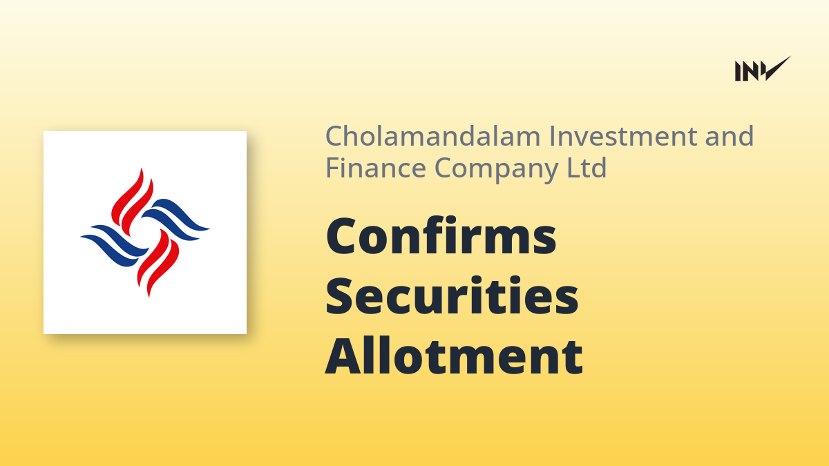 Cholamandalam Investment and Finance Company Limited Confirmation of Secured Non-Convertible Securities Allotment