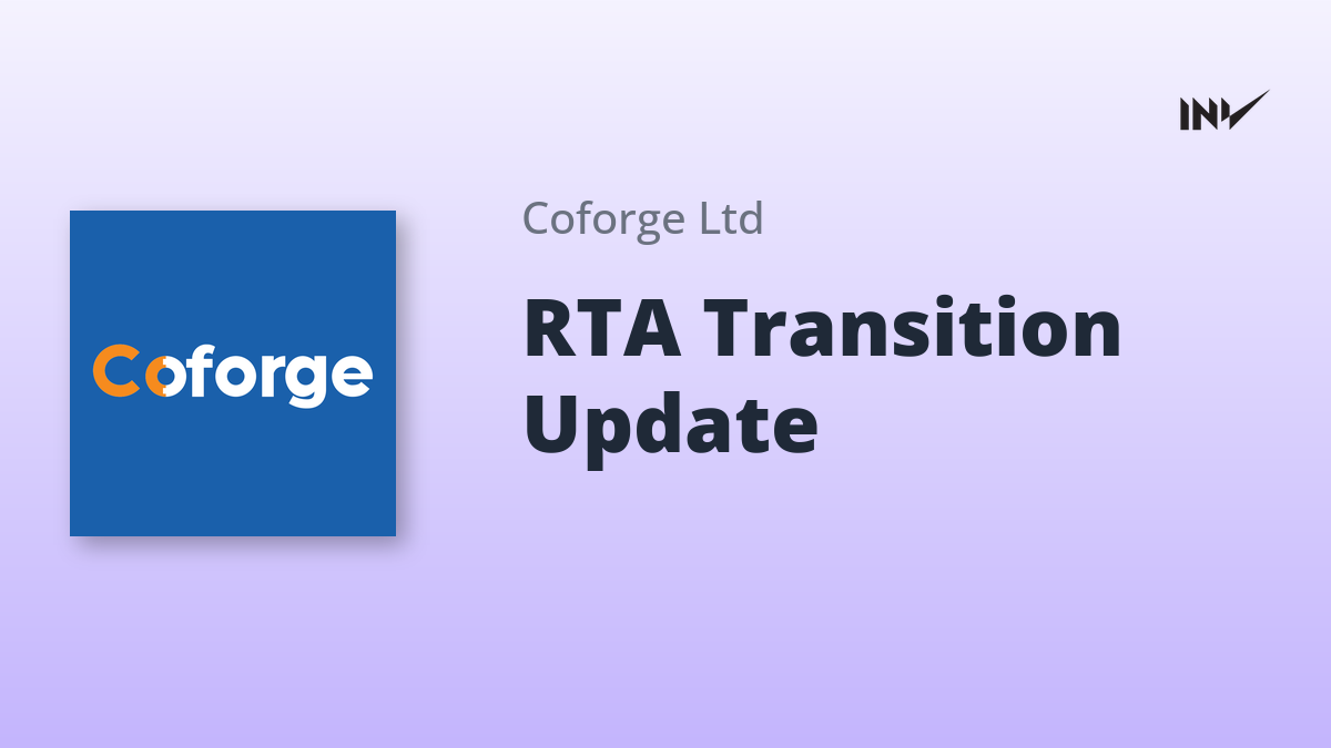 Coforge has announced an update regarding the transition of its Registrar and Share Transfer Agent (RTA). MUFG Intime India Private Limited will replace Alankit Assignments Limited as the RTA, effective in November 2025. The transition process is underway to shift the database and electronic connectivity. The company will announce the revised effective date in due course.